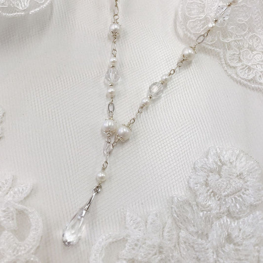 Vintage Style Pearl & Crystal Y necklace | Vintage Bridal Necklace