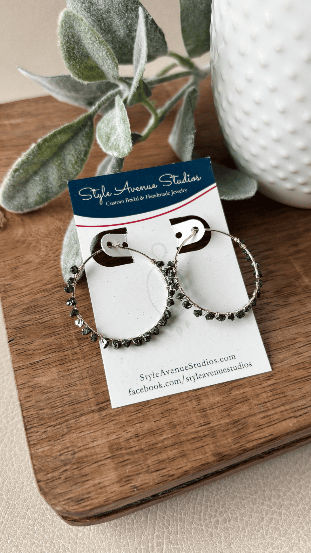 Tiny raw black diamonds are hand-wrapped along sterling silver hoops, creating texture and subtle sparkle with every turn of your head. Lightweight and comfortable, they’re easy to wear while still making a statement.