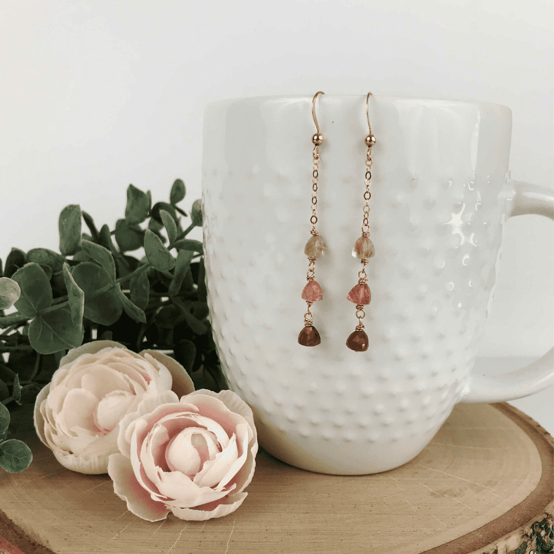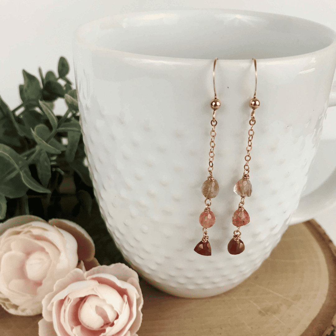 These Rutilated Quartz Earrings in Rose Gold look amazing with a scarf and messy bun for those crisp fall days. Perfect for running errands or looking spot on at work! They are so lightweight that you will forget you are wearing them.